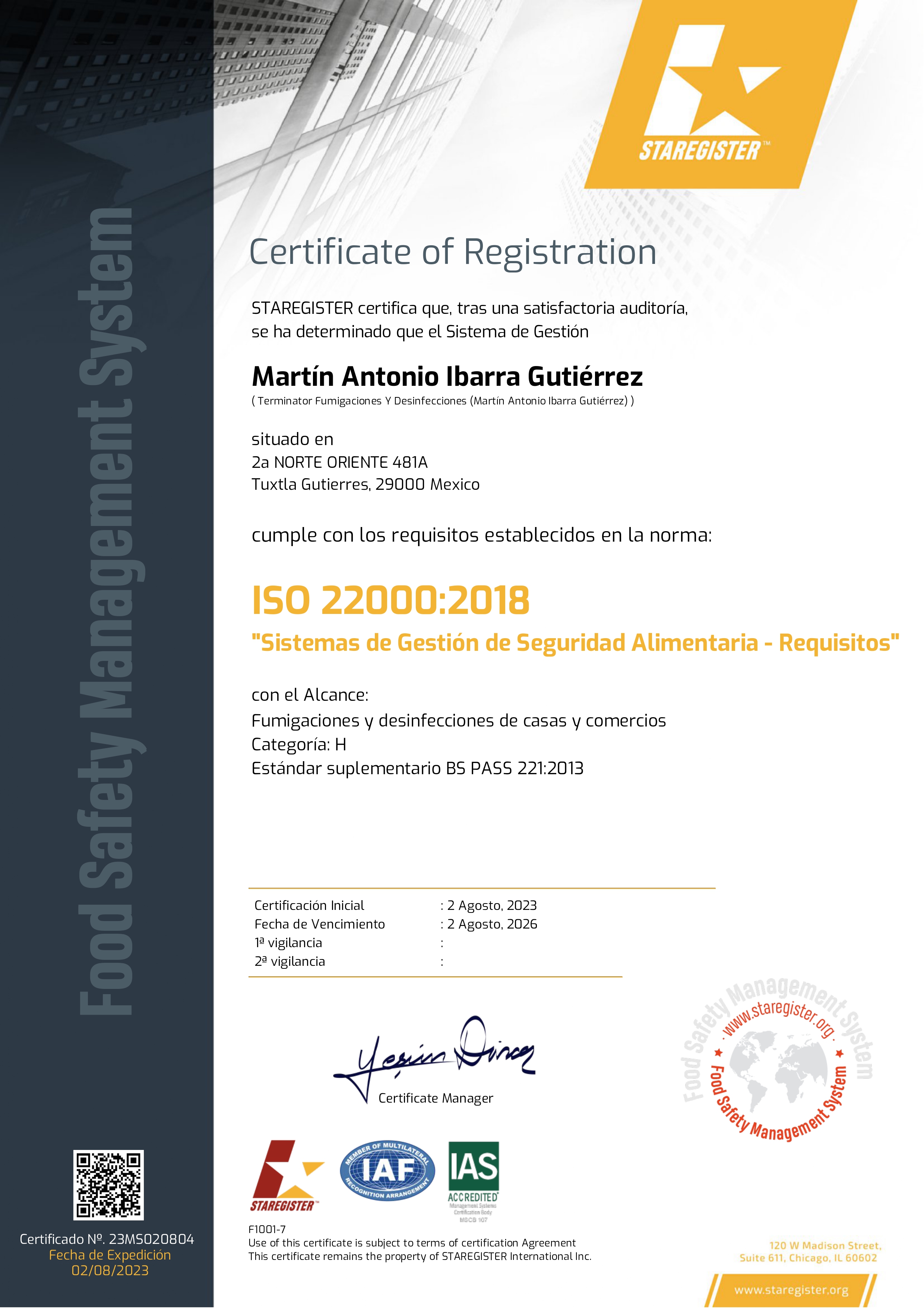 Certificado Registro ISO 22000:2018